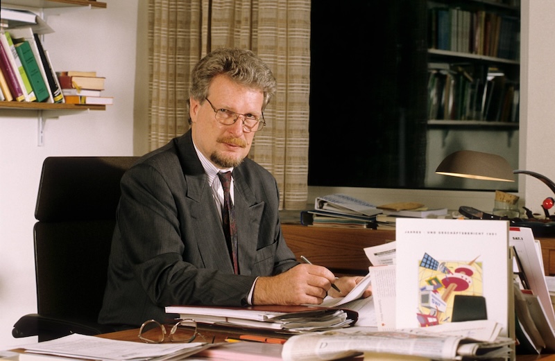 Porträt des Dichters als junger Mann: Der damalige Südwestfunk-Intendant Peter Voß in seinem Büro. Die Aufnahme stammt aus dem Jahr 1993. Foto: IMAGO/teutopress