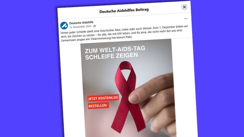 Ganz anders im Fall der roten Schleife. Das ist das Symbol, mit dem Menschen auf HIV aufmerksam machen und Solidarität zeigen. Der Verein hat die Schleifen zum Welt-Aids-Tag kostenlos an Interessierte verschickt und wollte das mit einer Anzeige auf Instagram bekanntmachen. Doch auch diese Werbung wurde verboten.